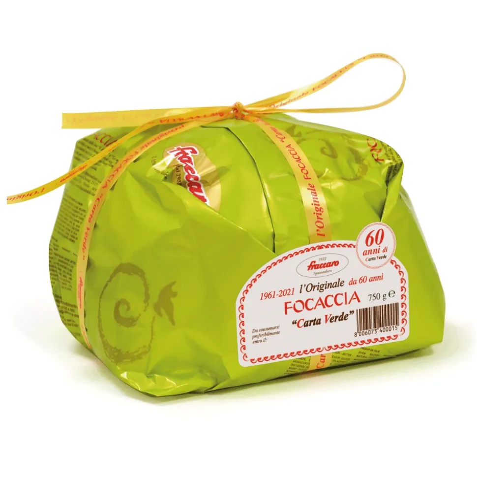 The famous Green Paper Cake of Pasticceria Fraccaro Spumadoro. A delicate cake with Venetian origins: soft and fragrant dough, sweetened by a delicate icing with sugar grains. This year it celebrates 60 years of Goodness!