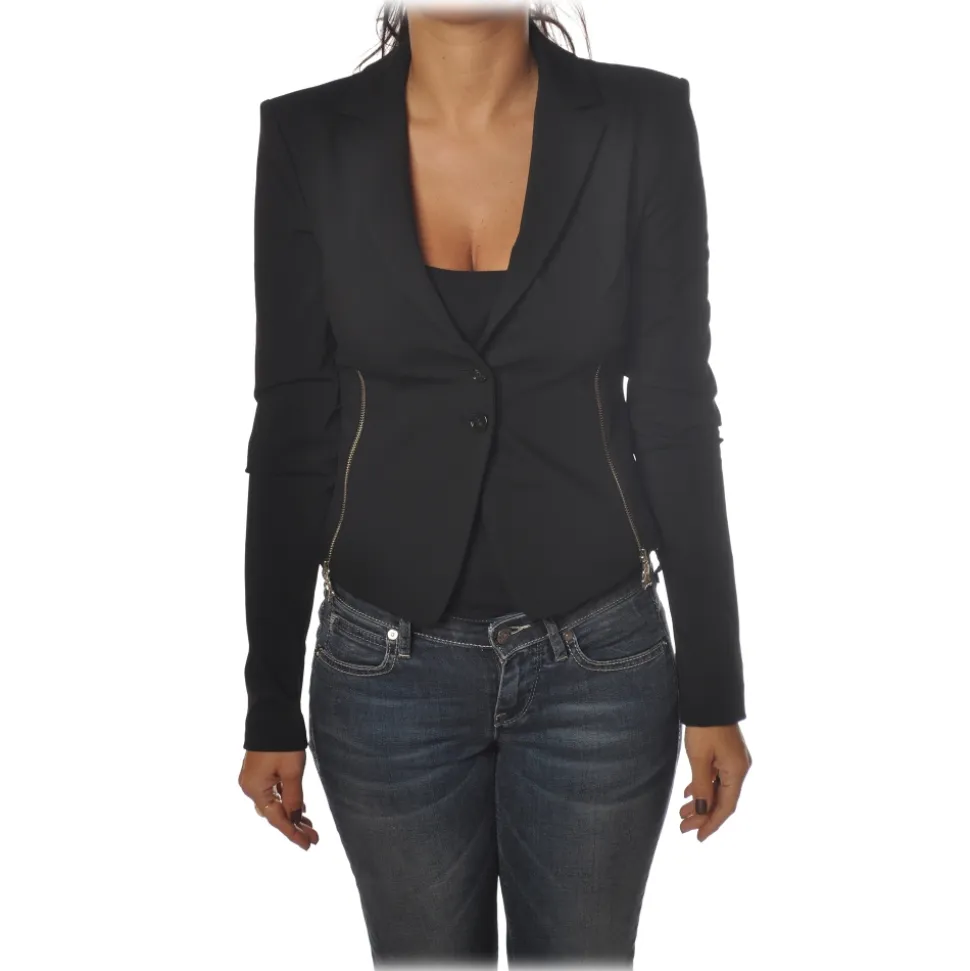 Patrizia Pepe – Jacket Two Buttons with Zip – Black – Jacket – Made in Italy – Luxury Exclusive Collection