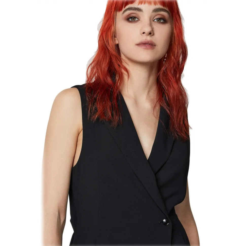Patrizia Pepe jumpsuit, short, sleeveless, with jacket lapel neckline, two slip pockets, cut-out detail on back.