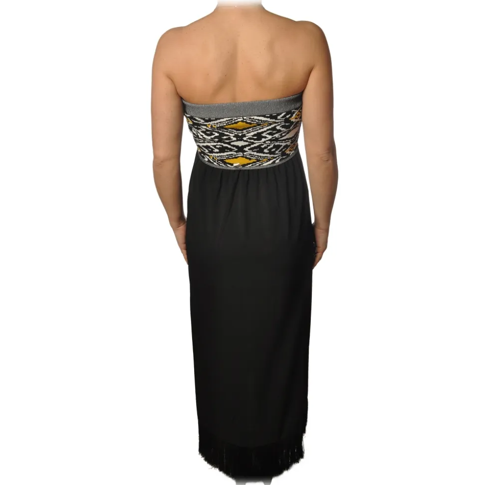 Patrizia Pepe dress, long model, with elastic at the breast, with processing on the top, on the bottom finishing fringes.