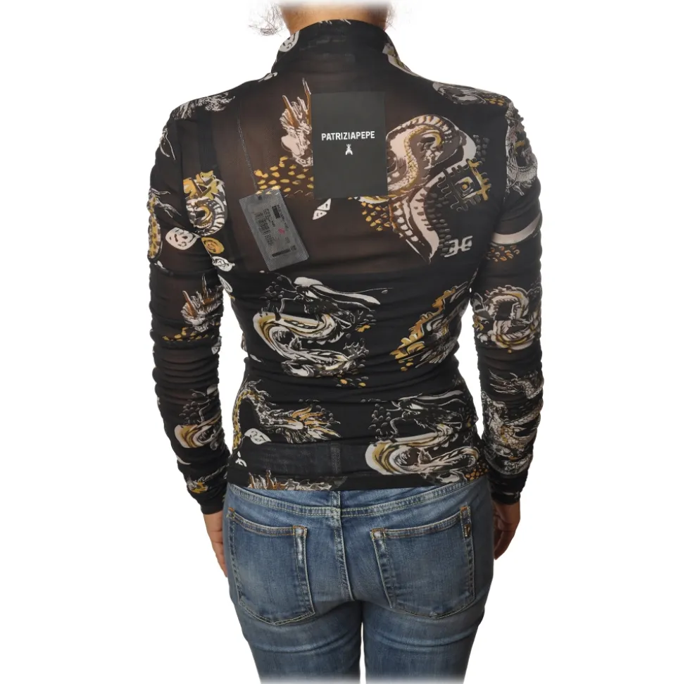 Patrizia Pepe – Long-Sleeve T-Shirt Tulle Model Pattern – Black/Dragon – T-Shirt – Made in Italy – Luxury Exclusive Collection
