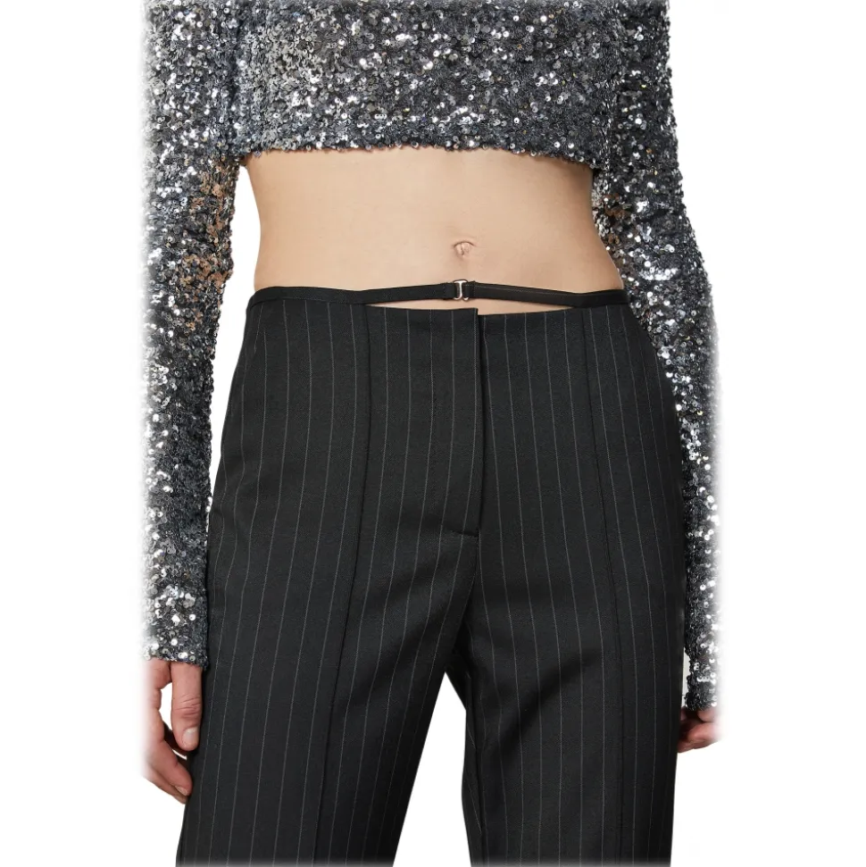 Patrizia Pepe – Pinstripe Patterned Trousers with Strap – Black – Trousers – Made in Italy – Luxury Exclusive Collection