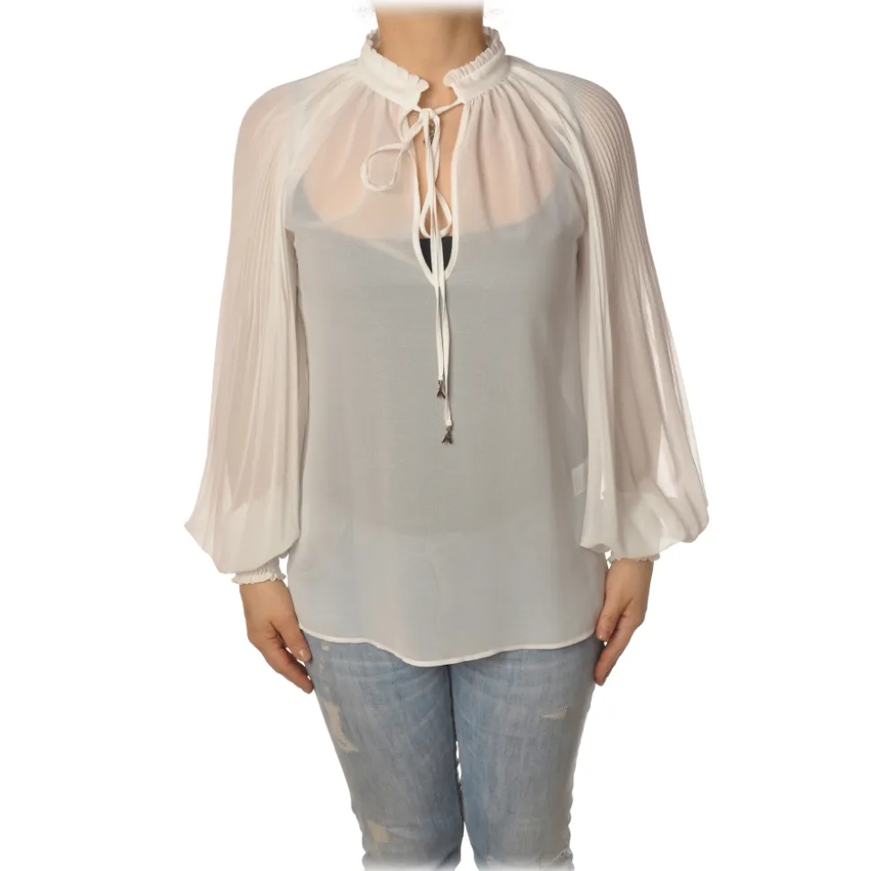 Patrizia Pepe – Pleated Blouse with Korean Collar – White – Shirt – Made in Italy – Luxury Exclusive Collection