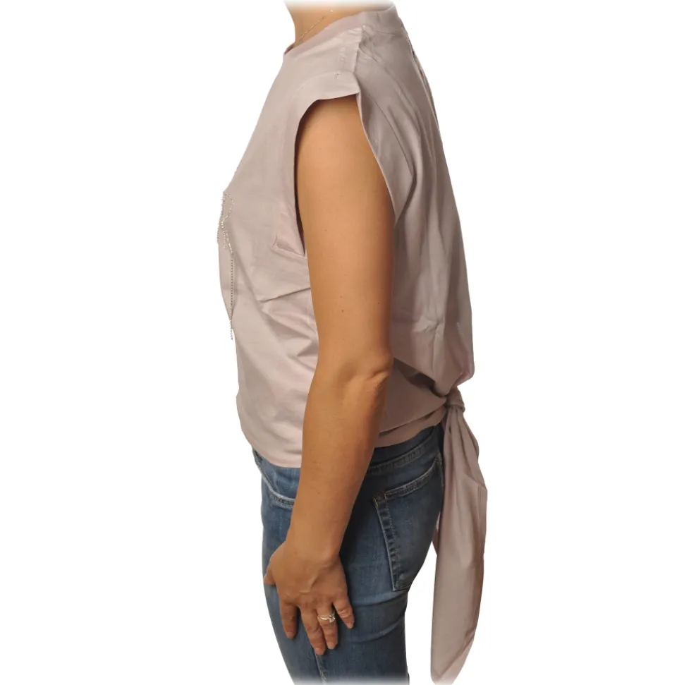 Patrizia Pepe – Sleeveless T-Shirt with Opening on the Back – Light Pink – T-Shirt – Made in Italy – Luxury Exclusive Collection