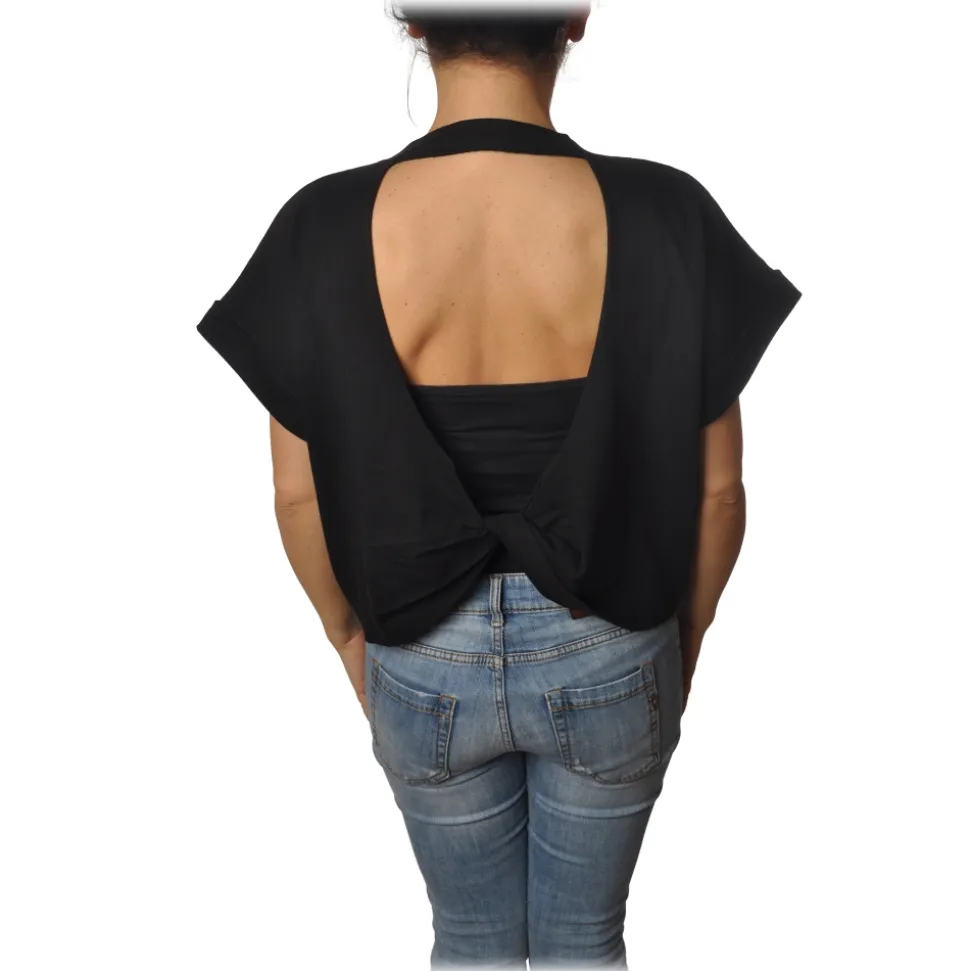 Patrizia Pepe – Sweatshirt Short Sleeve with Opening on the Back – Black – T-Shirt – Made in Italy – Luxury Exclusive Collection