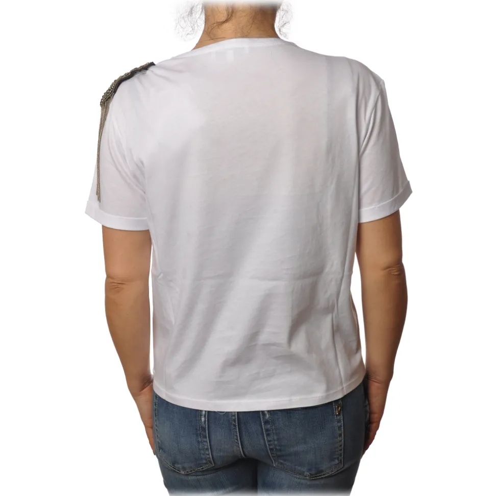 Patrizia Pepe – T-shirt Round-Neck Model with Brooch Detail – White – T-Shirt – Made in Italy – Luxury Exclusive Collection
