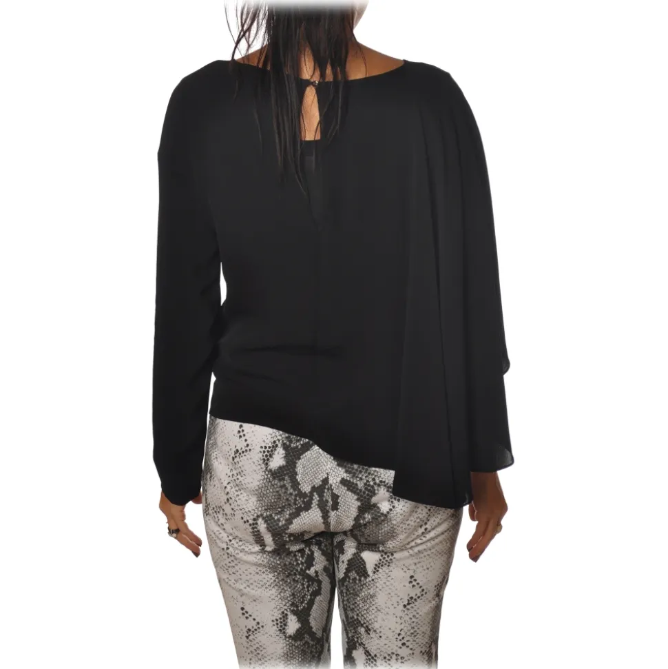 Patrizia Pepe – Tunic Blouse Model Asymmetrical – Black – Shirt – Made in Italy – Luxury Exclusive Collection