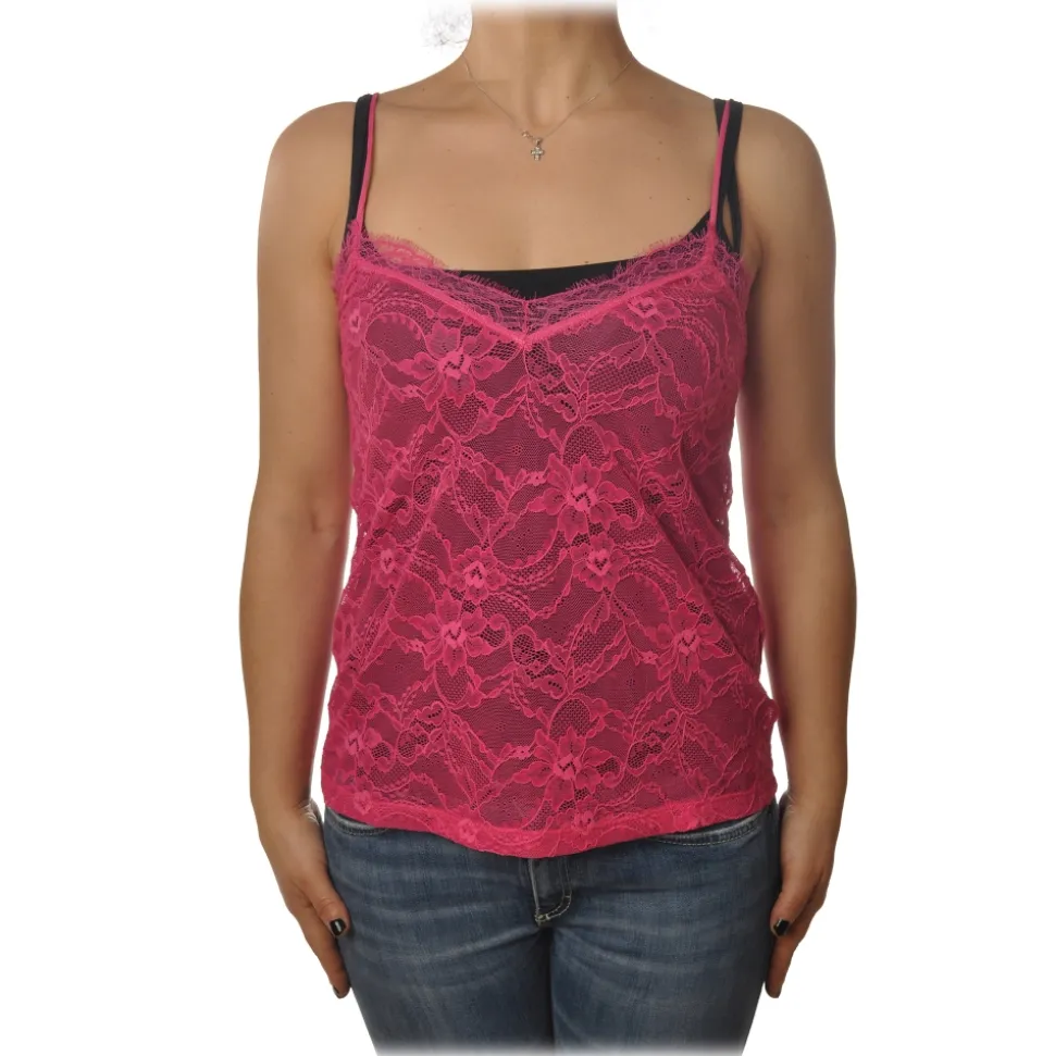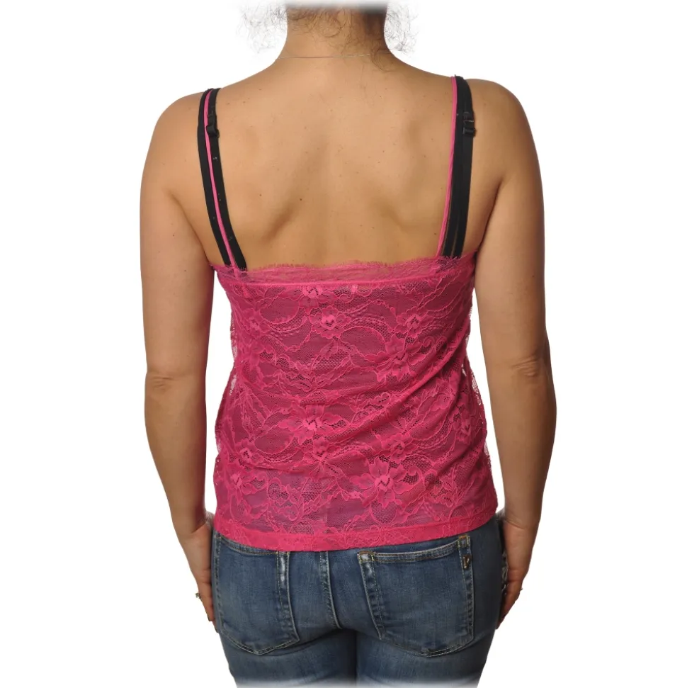 Patrizia Pepe – V-neck Tank Top in Stretch Lace – Fuxsia – T-Shirt – Made in Italy – Luxury Exclusive Collection