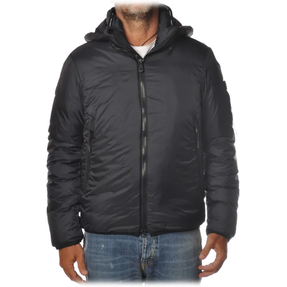 Peuterey jacket, Abdu / Knc model, standing collar with removable hood, in smooth nylon fabric, with elastic edge on the bottom and cuffs, with zip closure and two oblique pockets, feather padding.