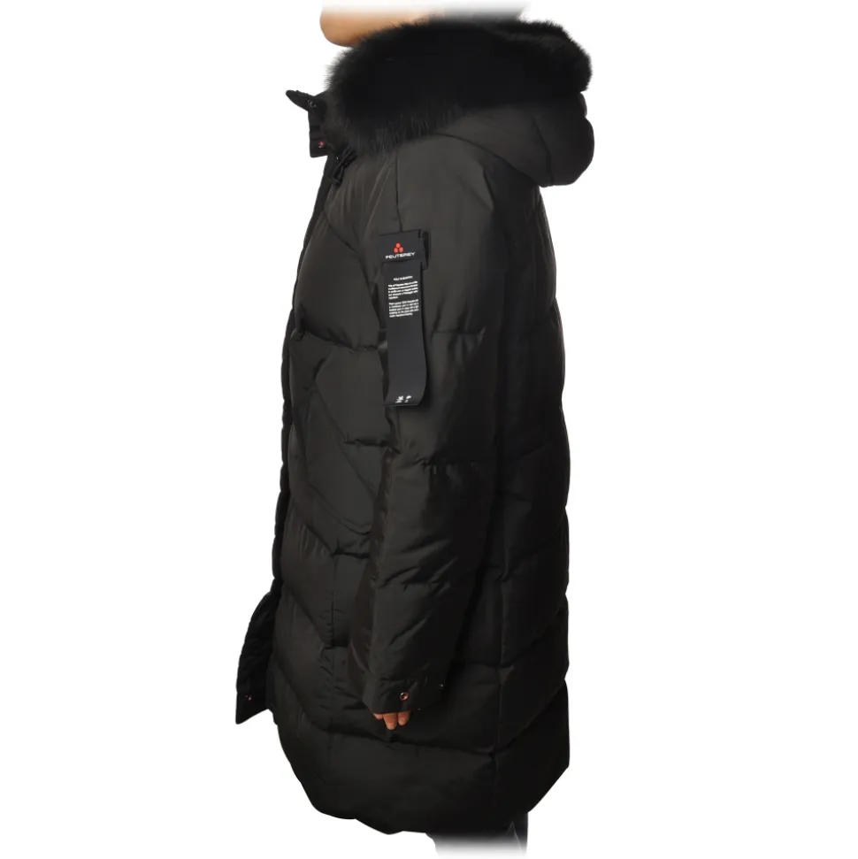 Peuterey jacket, Olong model, 3/4 over, stitched fabric, with two pockets with oblique flap, with hood finished with removable fur.