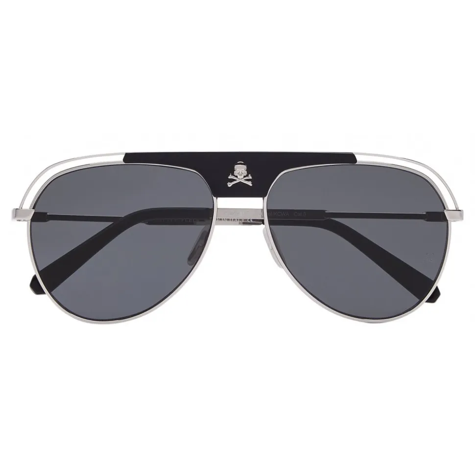 Classic aviator embellished with skull and crossbones on the bridge.