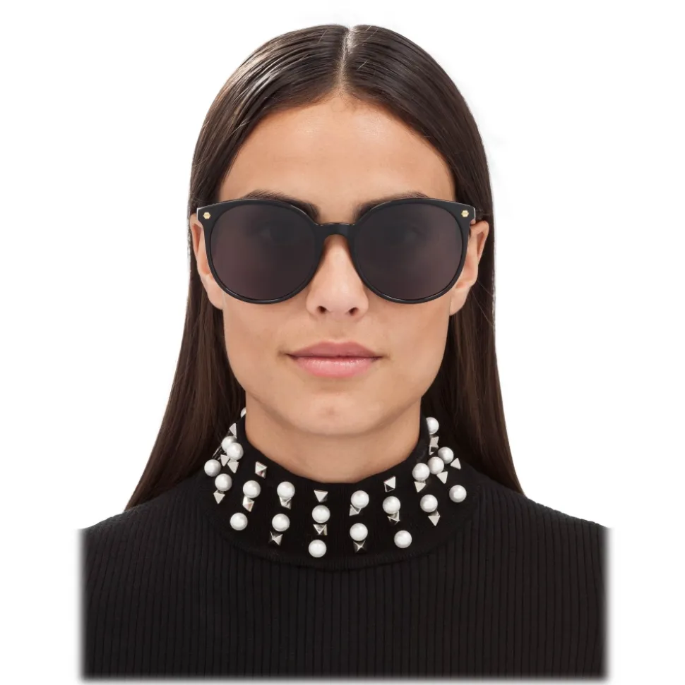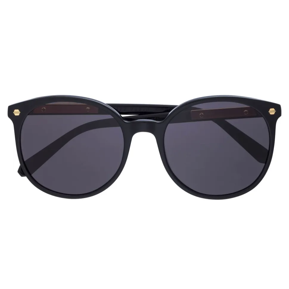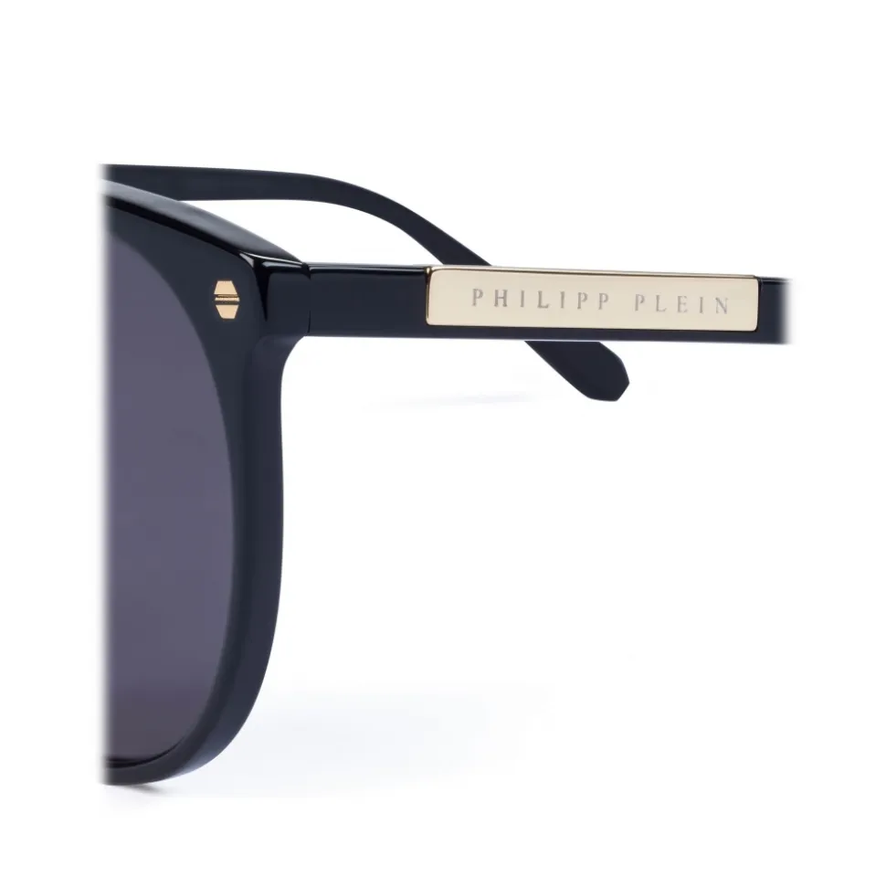 Philipp Plein Enjoy Collection sunglasses. Matte Black acetate frame. Classic round timeless model for women.