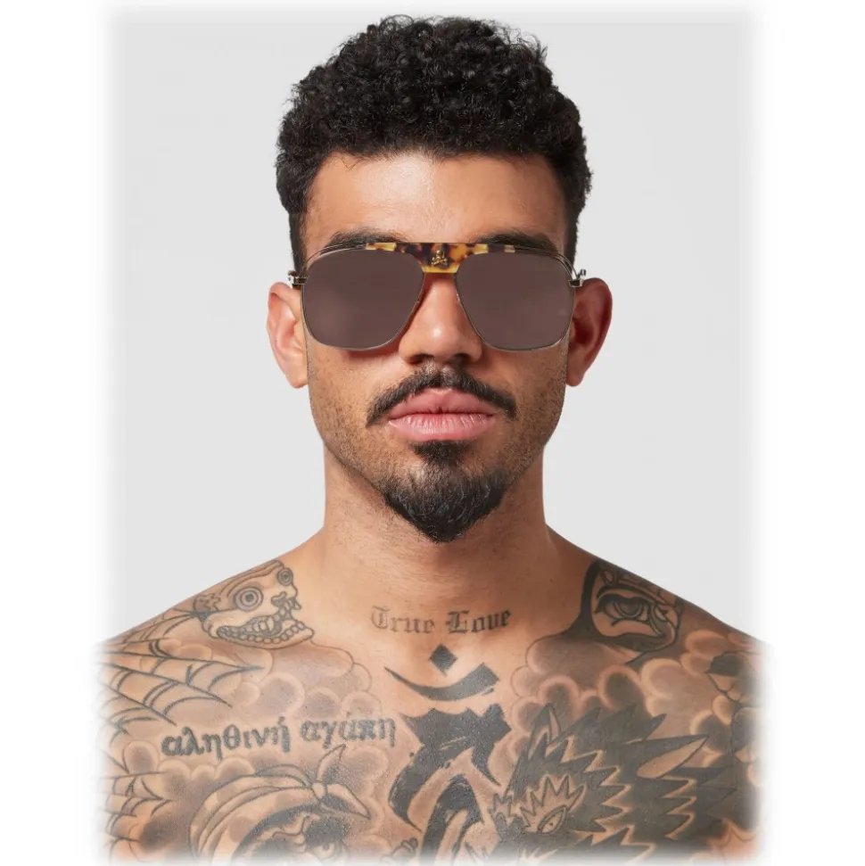 Montatura: Metallo colore Oro con barra e inserto in Acetato tartaruga maculato opaco