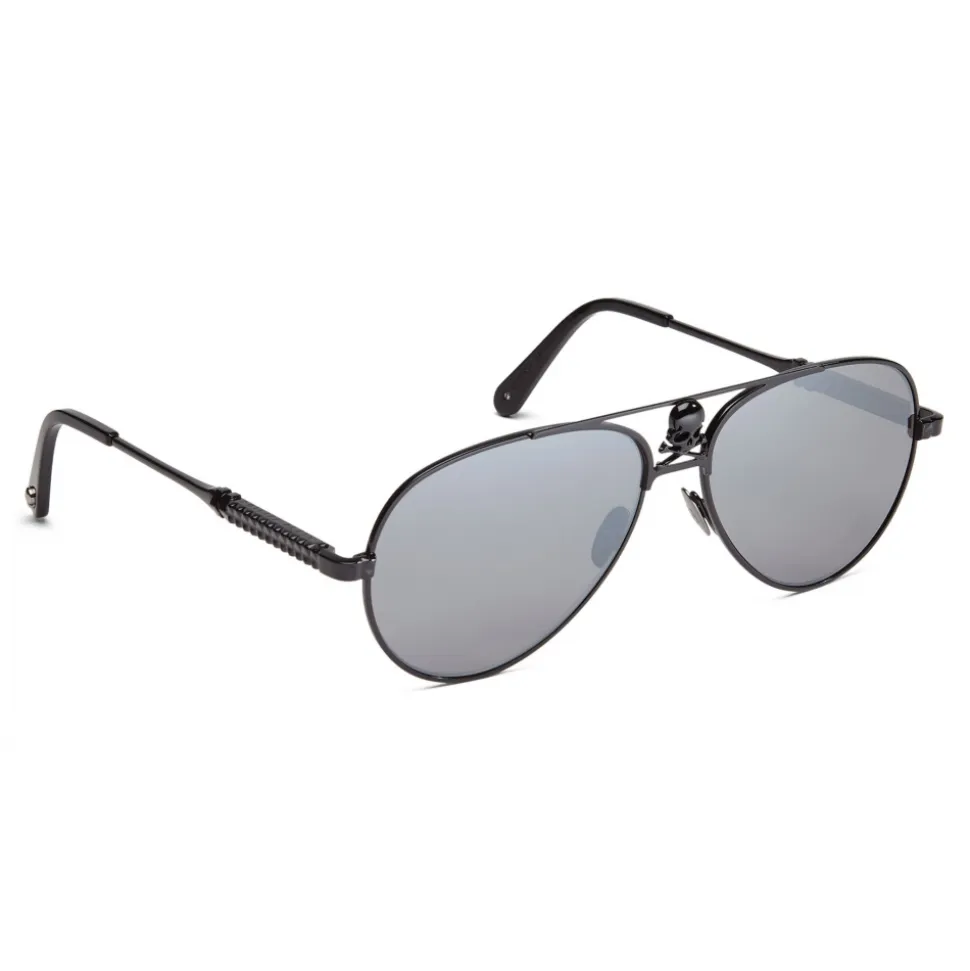 Philipp Plein Seventy Collection aviator sunglasses. Sunglasses with teardrop metal frame. Lenses with different colors. Central skull logo.