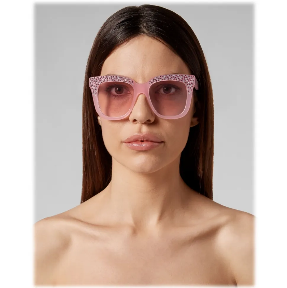 Philipp Plein Sparkle Collection sunglasses. Acetate frame sunglasses with half-squared edges enriched with sparkling details.