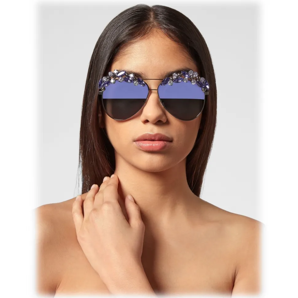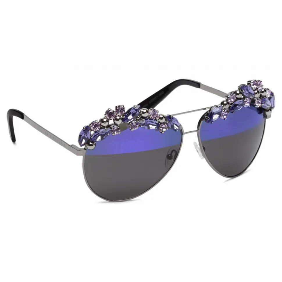 Philipp Plein Sunshine Collection sunglasses. Timeless Aviator Model embellished with precious stones.