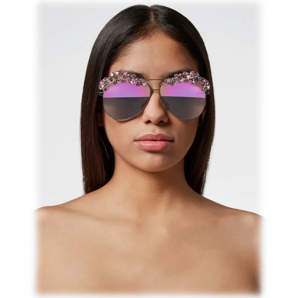 Philipp Plein Sunshine Collection sunglasses. Timeless Aviator Model embellished with precious stones.