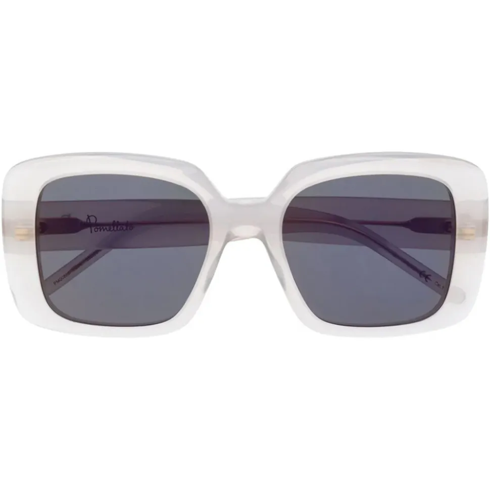 White and silver acetate transparent oversized-frame sunglasses from Pomellato Eyewear featuring tinted lenses, oversized frames, a straight bridge and straight arms with curved tips. This item comes with a protective case.