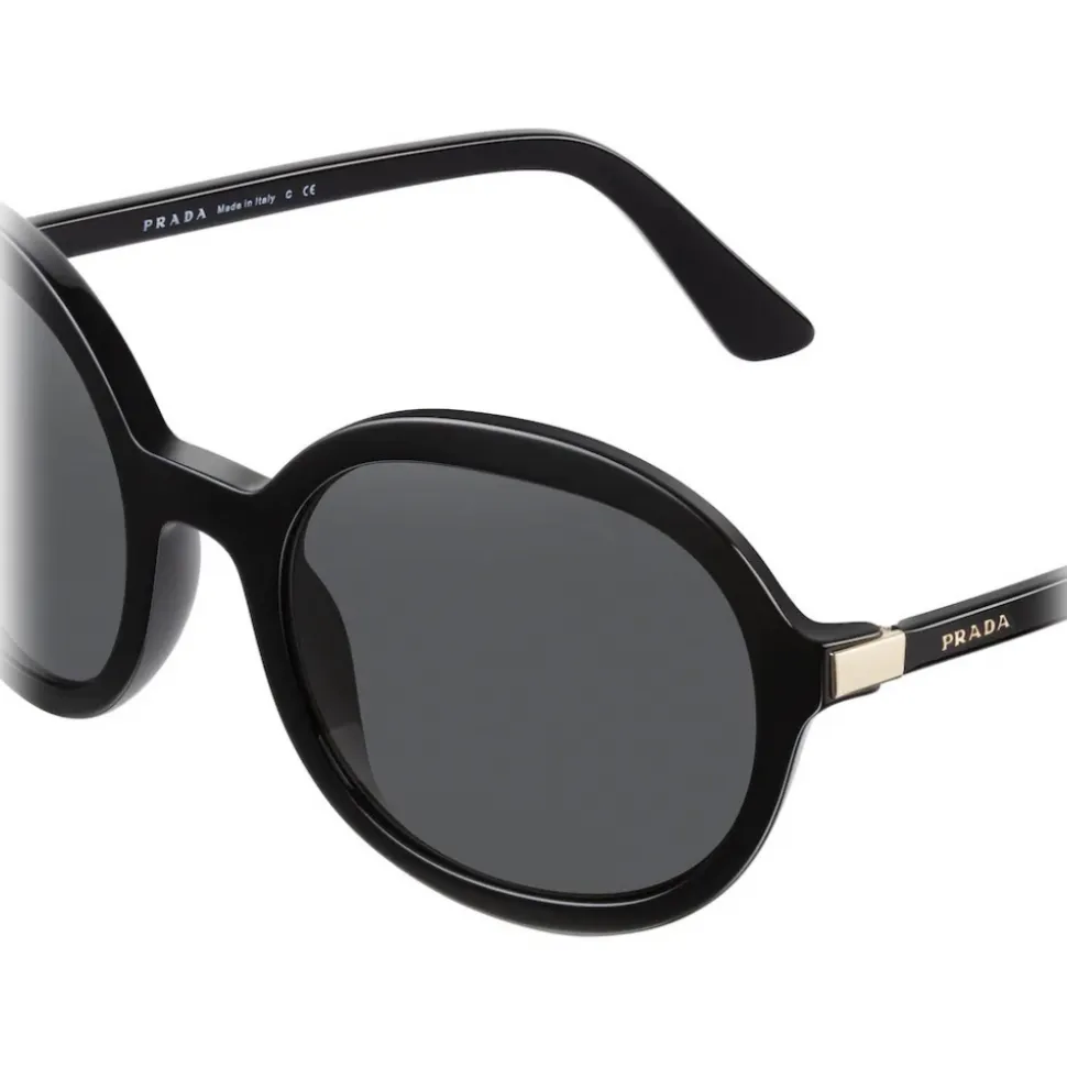 This eyewear with timeless elegance features an oversized, slightly curved round frame front with refined metal inserts on the temples. Prada lettering logo.