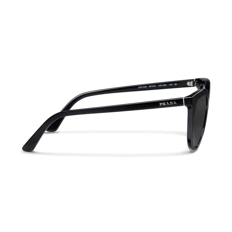 Square sunglasses characterized by elegant, slender acetate rims with contemporary feminine allure. Prada lettering logo.