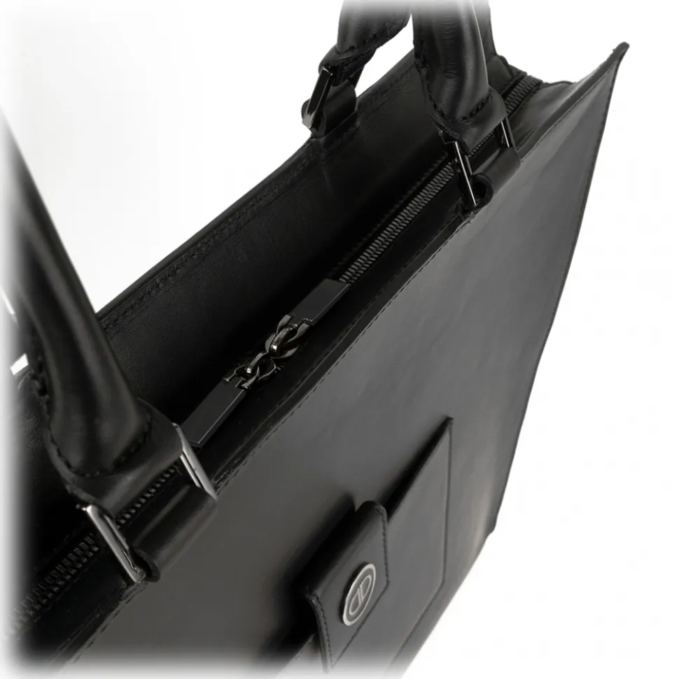 Big Deal is crafted of fine natural calfskin leather, and it features two padded leather handles and a large and practical zip that can be fastened to the sides with two convenient buttons. Priscilla Dinamo Big Deal is equipped with a small external pocket with magnetic closure. Leather interior with zip pocket, mobile phone pocket, and carabiner key ring. Everyday Chic, the class of a Big Deal bag enhances your style even in your most intense days. The large interior accommodates a laptop or tablet, transforming the Big Deal bag into your special business bag.