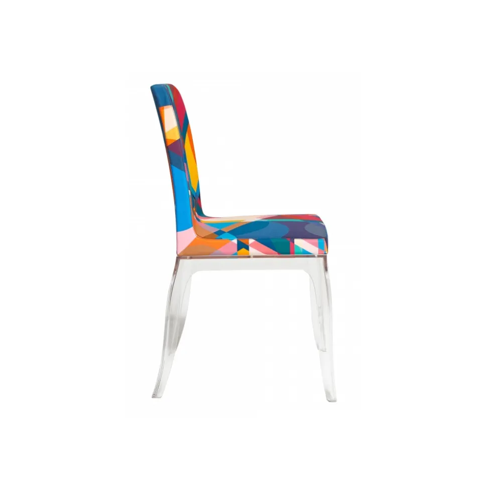 The B.B Chair, in a full Marcel Wanders style, has the amphorae leg like the Louis Philippe and therefore it requires that the backrest and the seat be upholstered in multicolored jaquard fabric.