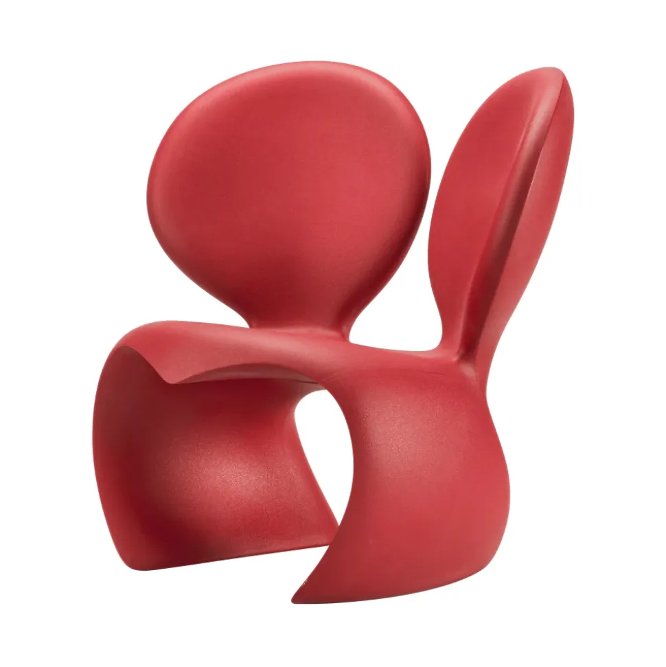 Originally created in 1988, Don’t F**k With The Mouse it’s one of Ron Arad’s most iconic chairs. As a limited edition product it has undergone numerous metamorphoses over the years – finally it has become an industrial product proposed by Qeeboo in two versions: one for indoor spaces made in polyurethane foam covered with fabric and the other one also for outdoor spaces in rotational molding recyclable polyethylene.