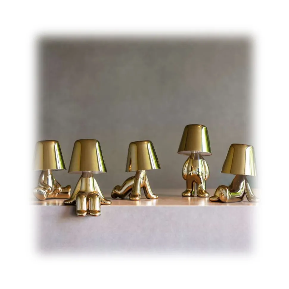 Designed by Stefano Giovannoni, Golden Brothers are a family of lamp-characters which, reflecting a soft light on their body, enhance the plasticity and fluidity of their silhouette.