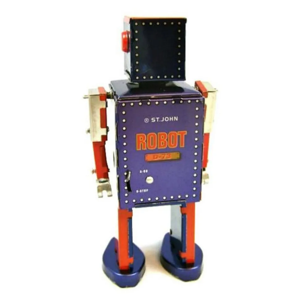 Saint John – D-73 Robot – Collectible Retro Wind Up Tin Toy – Red and Blue – Tin Toys