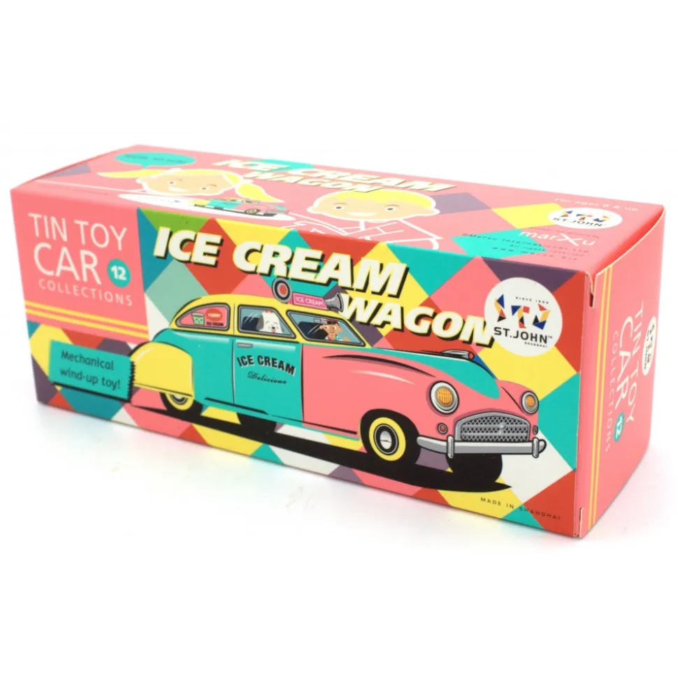 Unique, high-quality mechanical collectable Saint John made in the same way as the popular 1930s-1960s tin toys. Ice Cream Wagon Car Tin Toy.