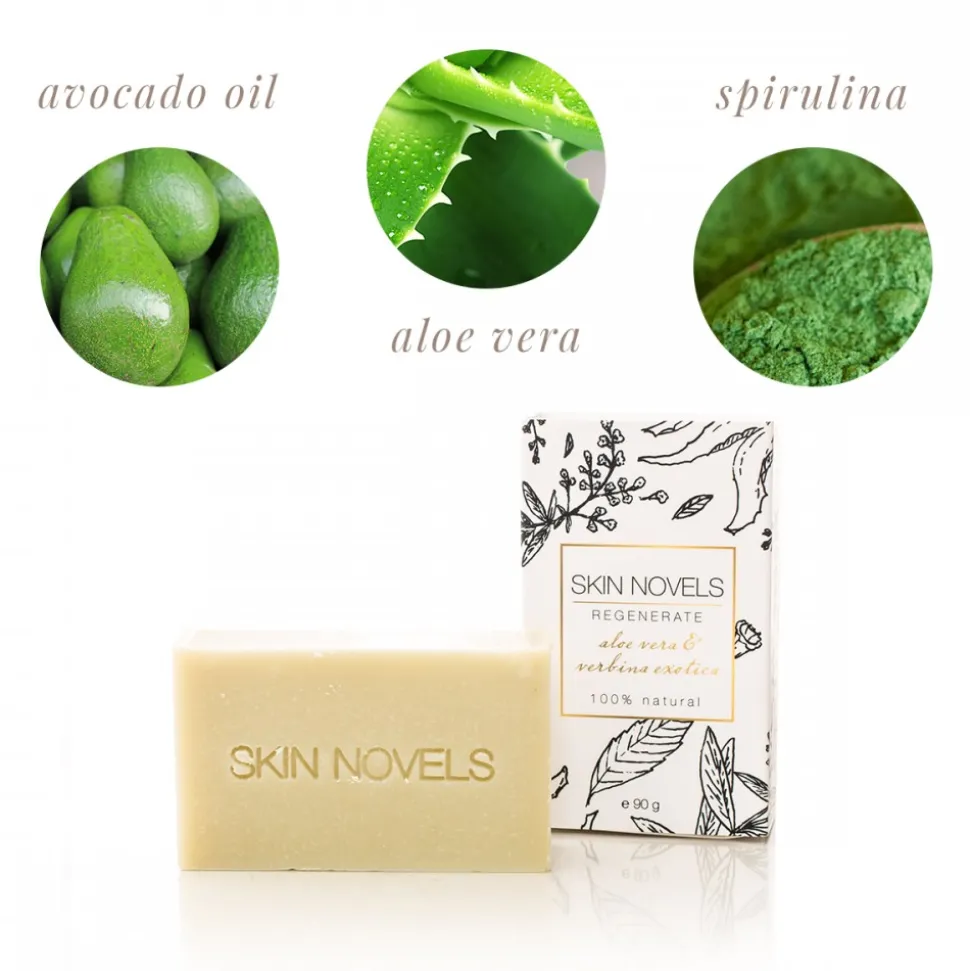 Skin Novels – Regenerate – Natural Soap with Aloe Vera & Spirulina – 100 % Natural Handmade Soap