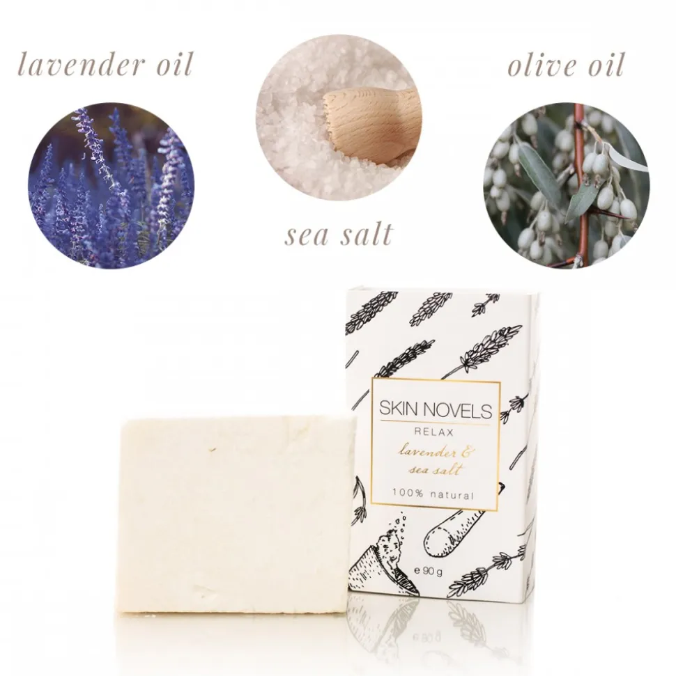 Skin Novels – Relax – Natural Soap with Lavender & Sea Salt – 100 % Natural Handmade Soap