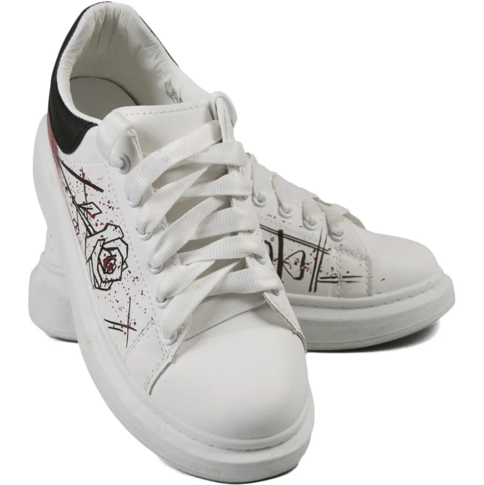 Snob Sneakers – La Vie En Roses By Veronica Moon – Sneakers – White Leather – Handmade in Italy – Luxury Exclusive Collection
