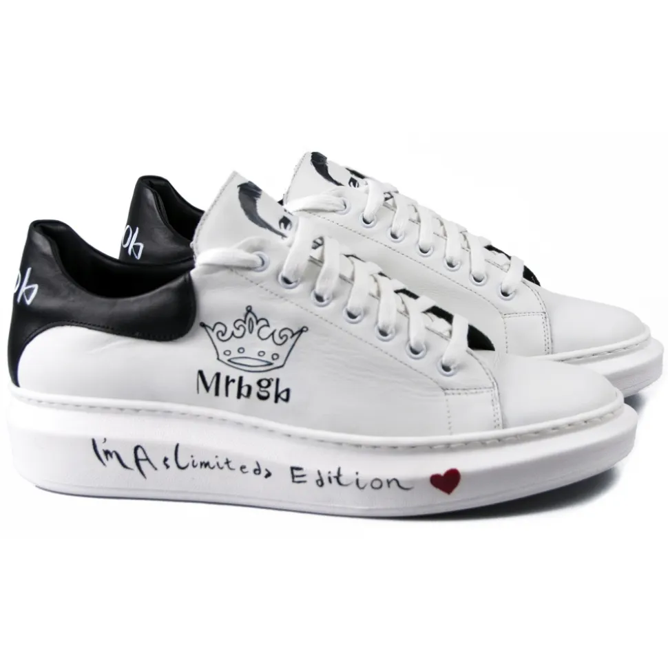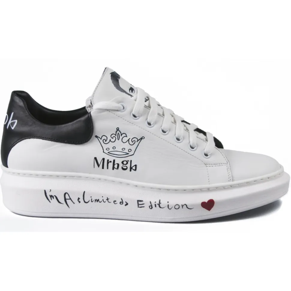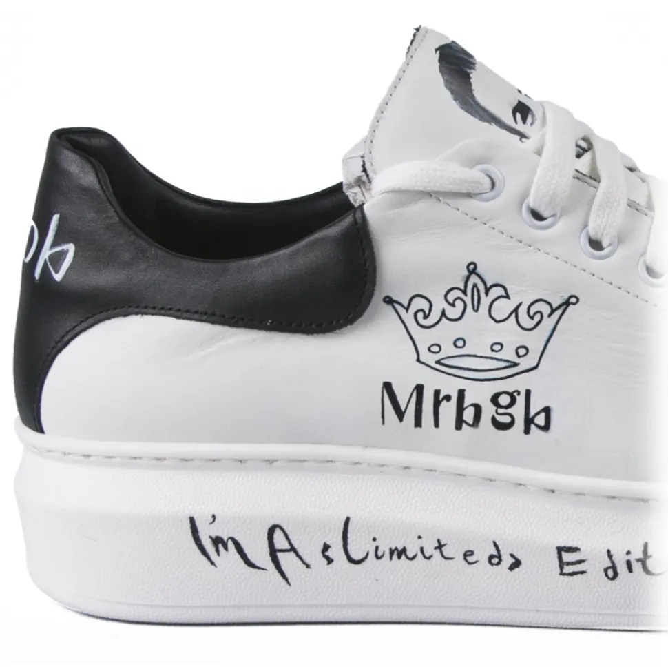 NY Graffiti-Royal Rebel By Veronica Moon– Sneakers – White Leather – Handmade in Italy – Luxury Exclusive Collection
