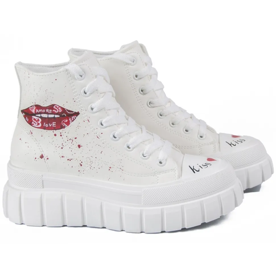 Snob Sneakers –Your Kiss Is On My List By Veronica Moon- Sneakers – White Leather – Handmade in Italy – Luxury Exclusive Collection