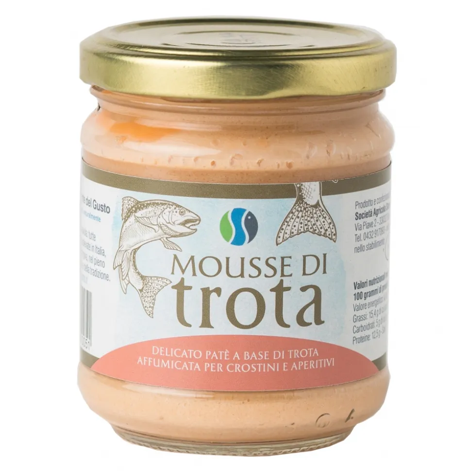 It is a delicate trout patty particularly trout, trout reared in resurgent waters, near the village of Sterpo, Udine, trout are processed in a very short time and the fresh fillets are hot smoked.