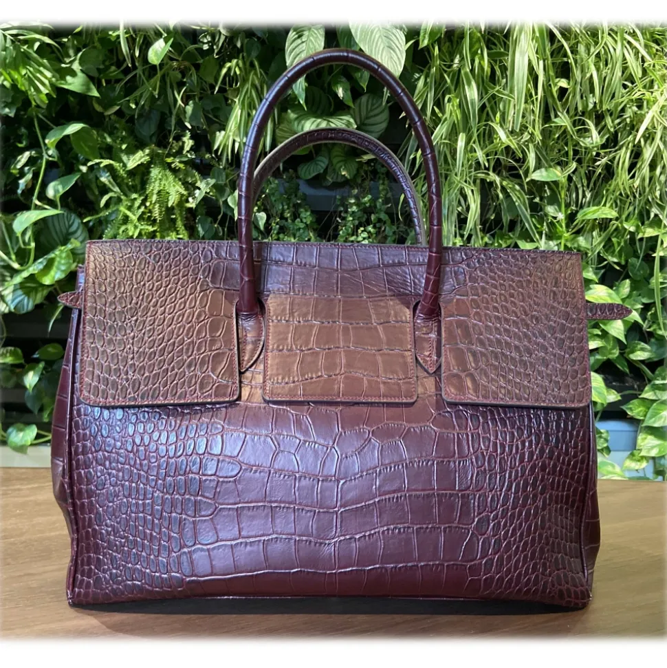 Suèi – Bag of Printed Crocodile Leather – Vine – Handmade in Italy – Luxury Exclusive Collection