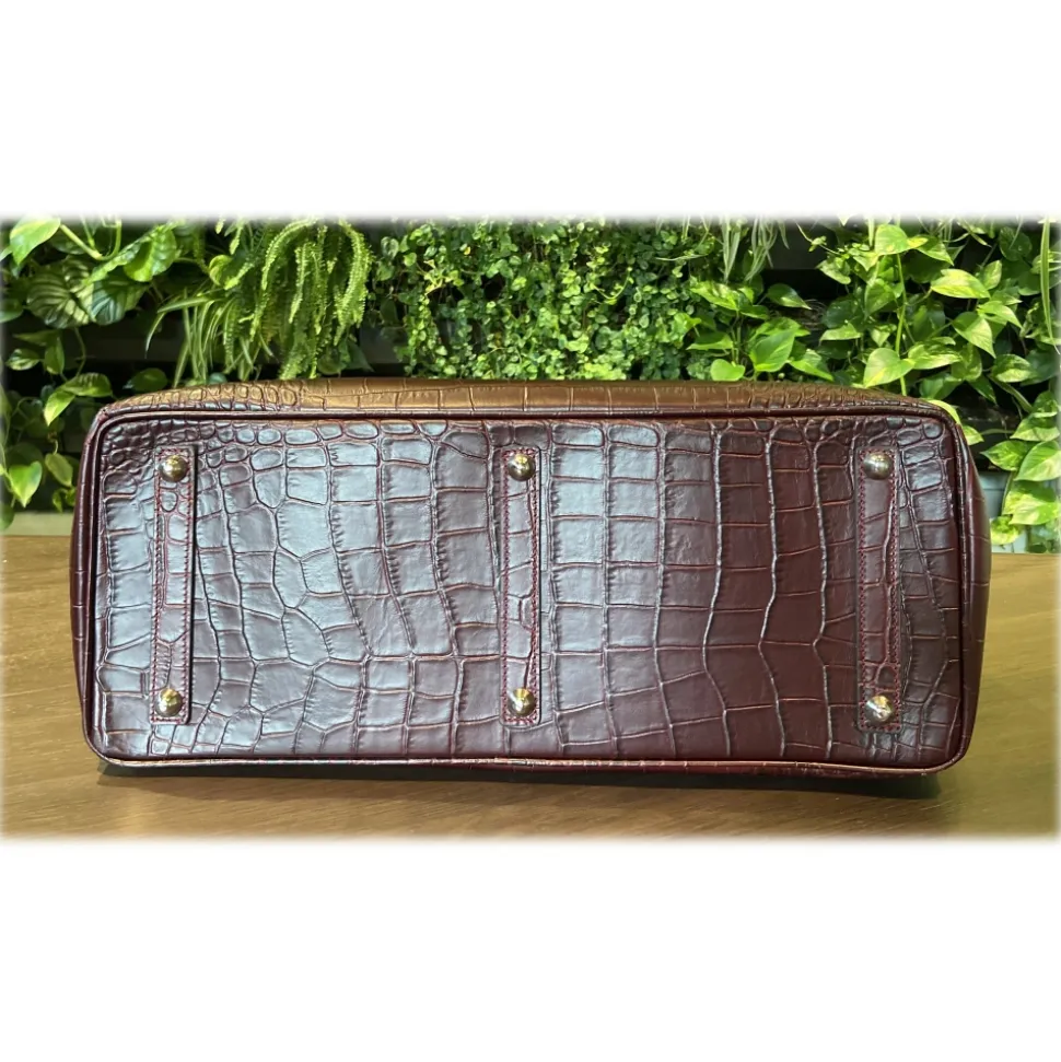Bag of printed crocodile leather color Vine, lining 100 % of leather/satin color Bordo/Red.