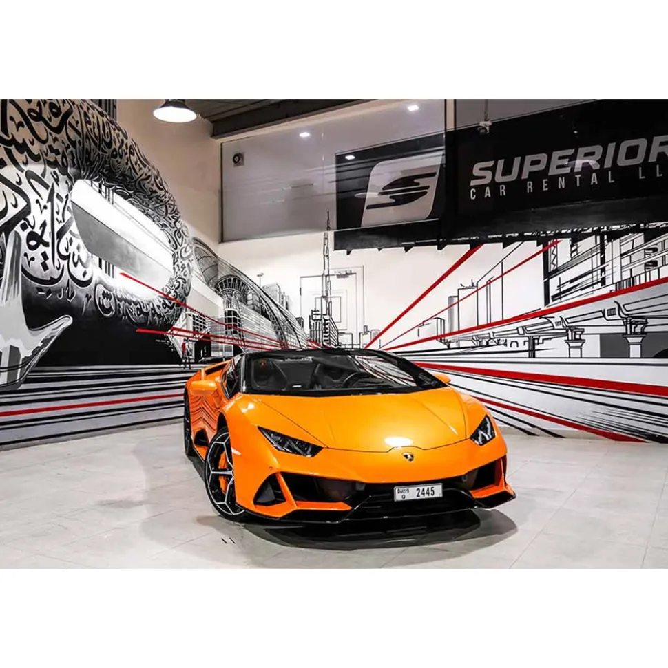 Superior Car Rental – Lamborghini Huracán EVO Spyder – Orange – Exclusive Luxury Rent