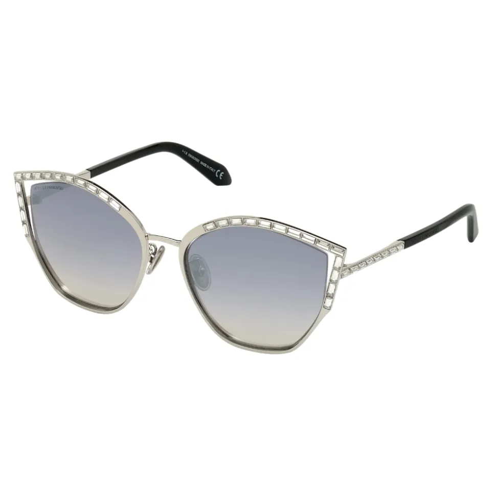 With their feminine cat-eye silhouette and eye-catching crystal decorations, this pair of Atelier Swarovski sunglasses is a shimmering showcase of craftsmanship and creativity. Their cool, modern design also features palladium metal elements and gradient gray lenses with mirror effect. Easy to combine with the matching Fluid jewelry pieces, they are the ultimate glamorous summer accessory.