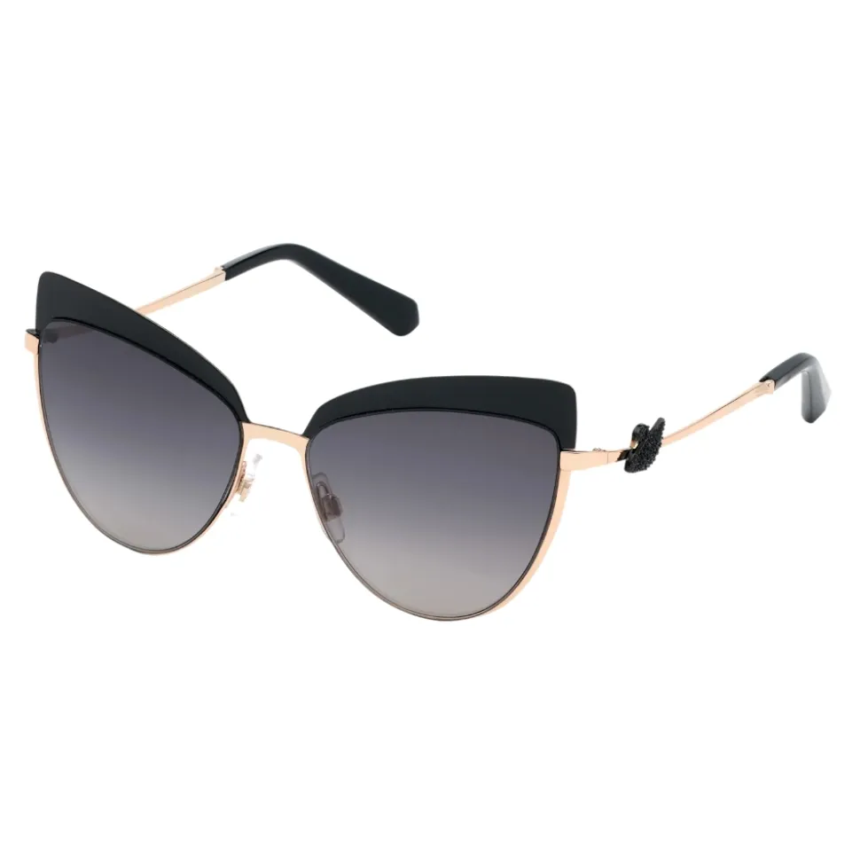 Make a super-stylish statement in this pair of cat-eye sunglasses. Feminine and on-trend, the design combines a rose gold metal front and temples with matt black eyebrows and gradient smoke lenses. Swarovski’s iconic swan motif appears on the left temple, adorned with jet-black crystals for a hint of sparkle. Mix and match with Iconic Swan jewelry pieces to complete the look.