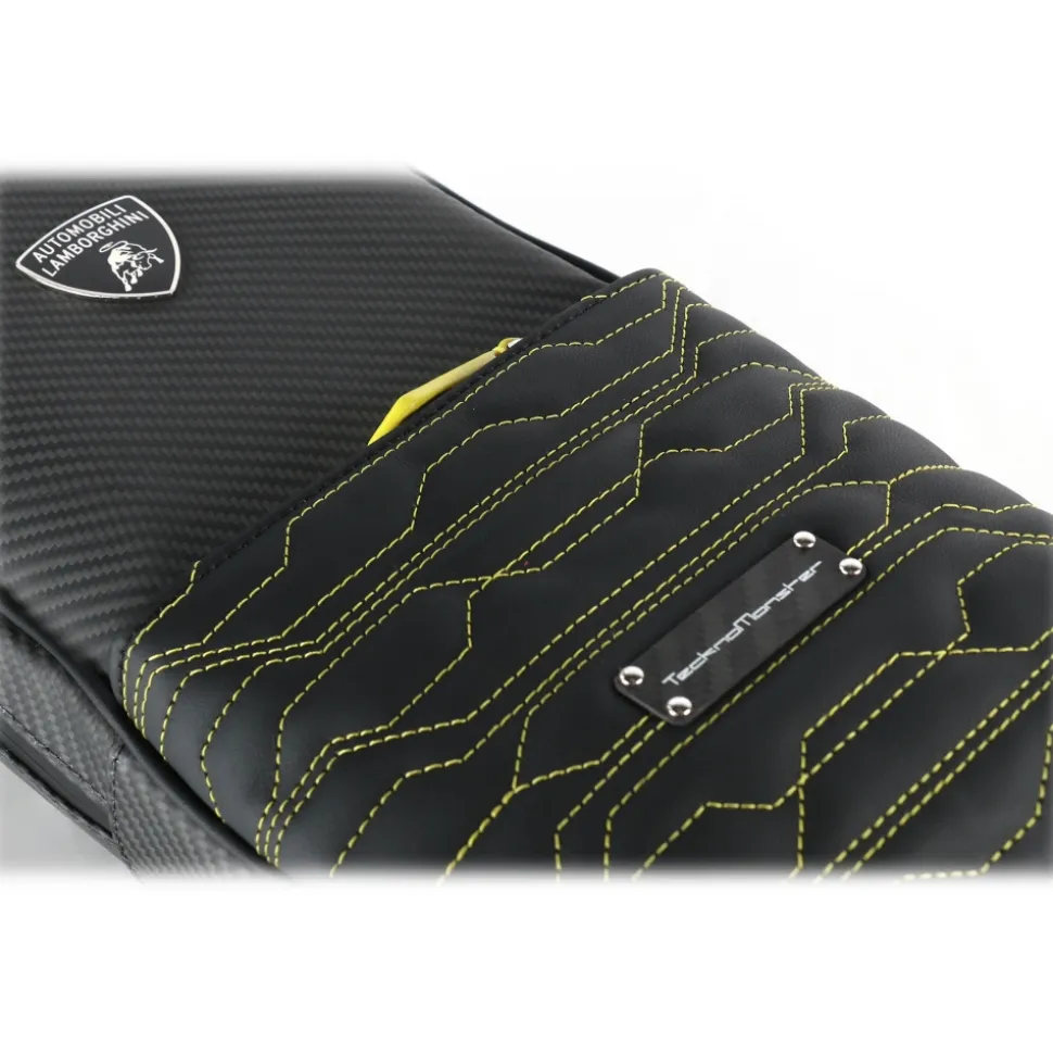 The Attak Crossbody Bag is a product of the exclusive partnership between the legendary car manufacturer from Sant’Agata Bolognese and TecknoMonster. Made entirely in Italy, this item stands apart for its premium materials, curated details and contrasting quilting which traces out the iconic signature hexagonal pattern.