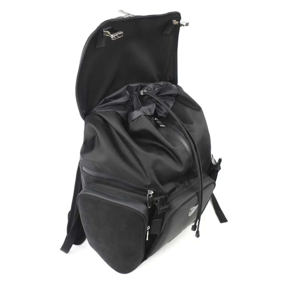 The Klimber Automobili Lamborghini backpack is the result of an exclusively Italian collaboration between the Casa del Toro and TecknoMonster. Handcrafted in Italy, the special edition Black Carpet is created using the same materials used in the super sports cars Lamborghini, soft carbon and Alcantara®, combined with a practical technical nylon. The hexagonal quilting of Alcantara® makes this iconic object.