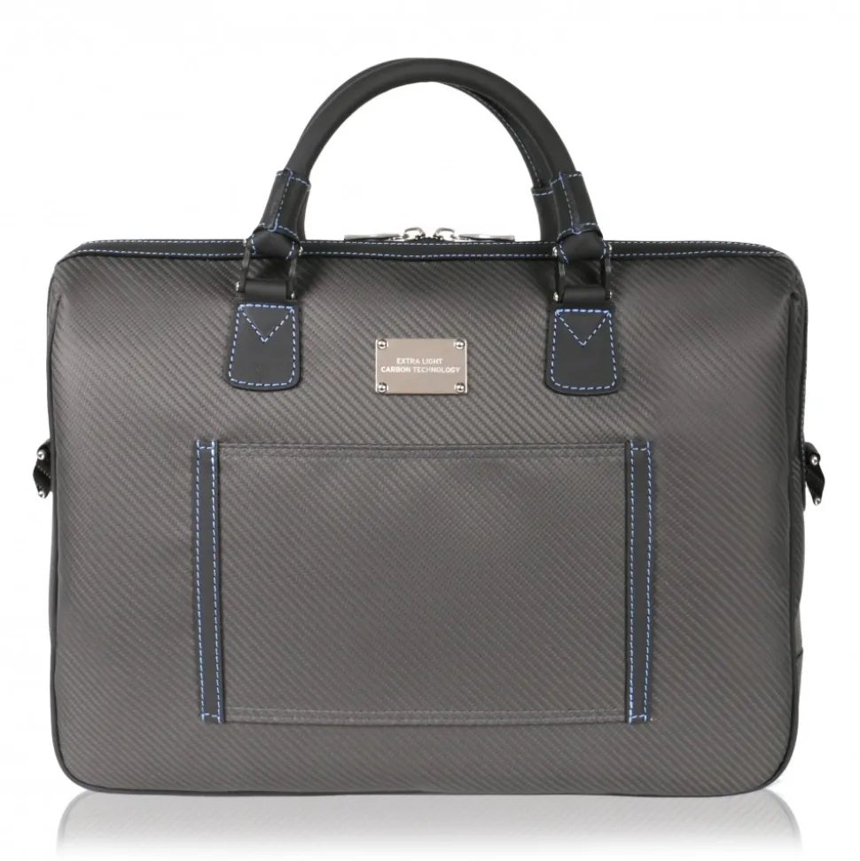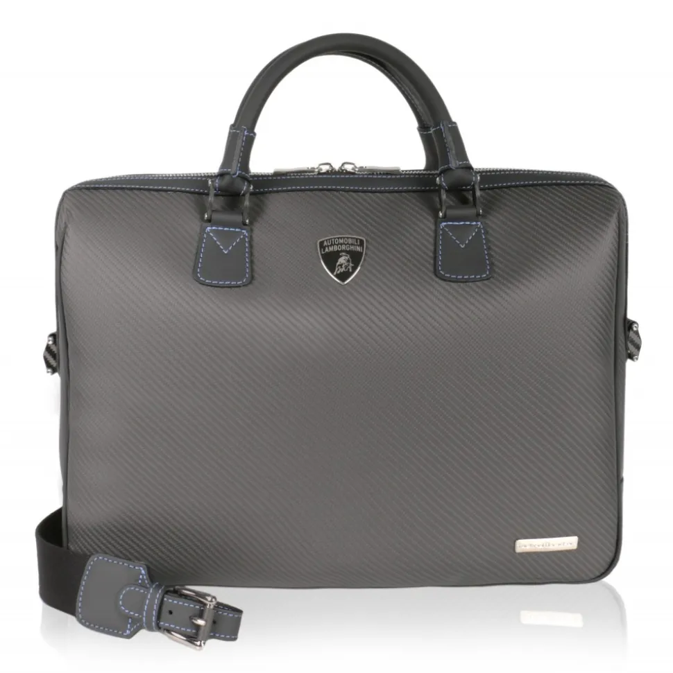 TecknoMonster and Automobili Lamborghini co-branding ultralight business bag in Nix Carbon Fibre. Car leather is used for handle and details which come in black colour with blue stitchings.