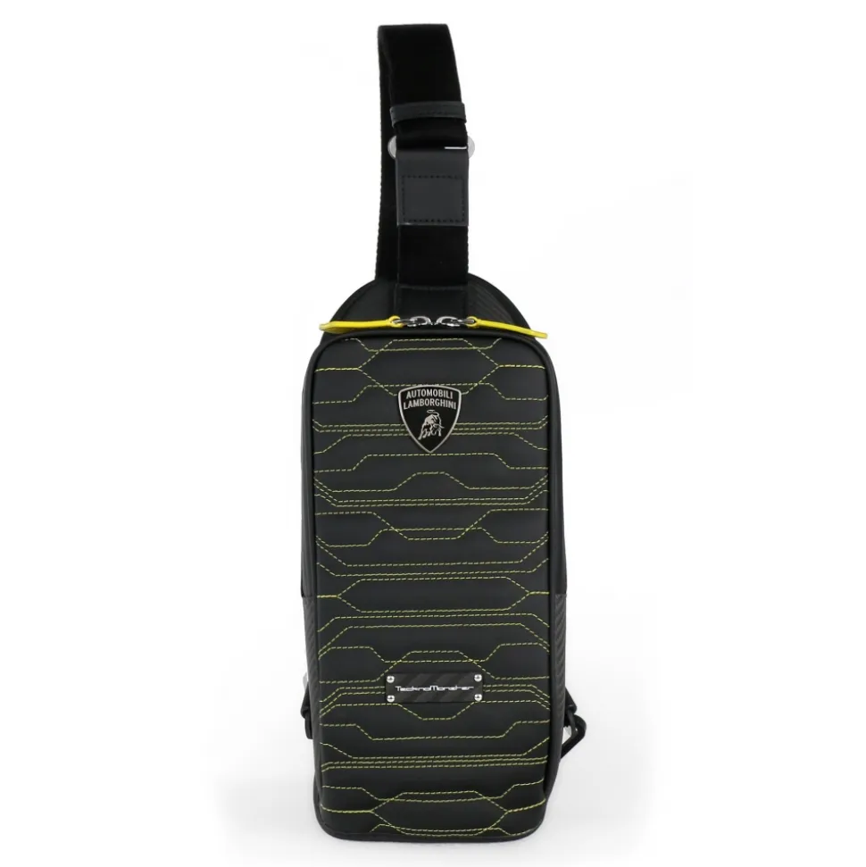 The Task Crossbody Bag is a product of the exclusive partnership between the legendary car manufacturer from Sant’Agata Bolognese and TecknoMonster. Made entirely in Italy, this item stands apart for its premium materials, curated details and contrasting quilting which traces out the iconic signature hexagonal pattern.