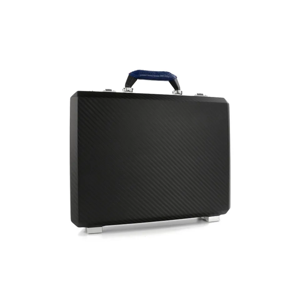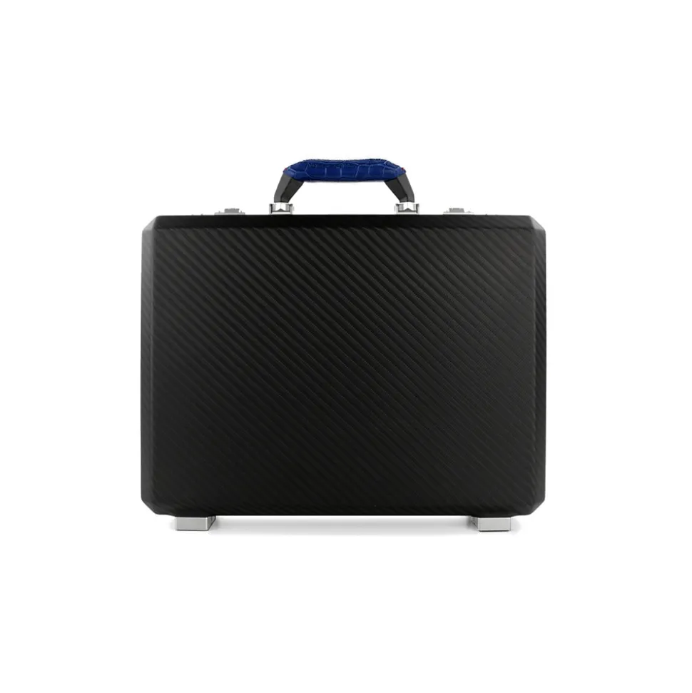 TecknoMonster – Cavok Opaque – Business Case – Briefcase in Opaque Carbon Fiber and Leather Crocodile – Blue –Â Luxury Collection
