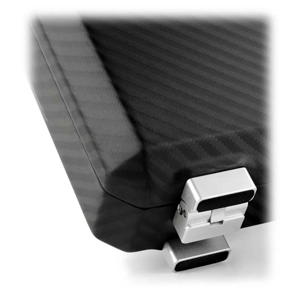 Cavok Opaque-Black Leather Attachè Case In Carbon Fiber. Document case with organizer. Attaché case made of carbon fiber autoclave and solid aluminum closures. Made exclusively in Italy, it combines aerospace technologies with the precious knowledge and skills of our master craftsmen.