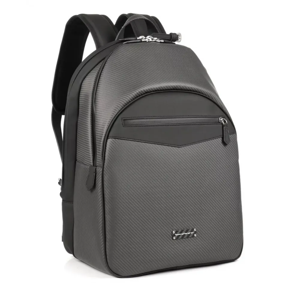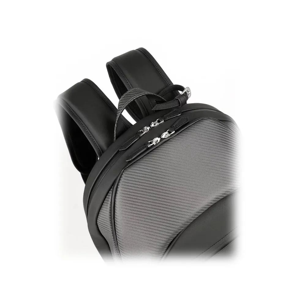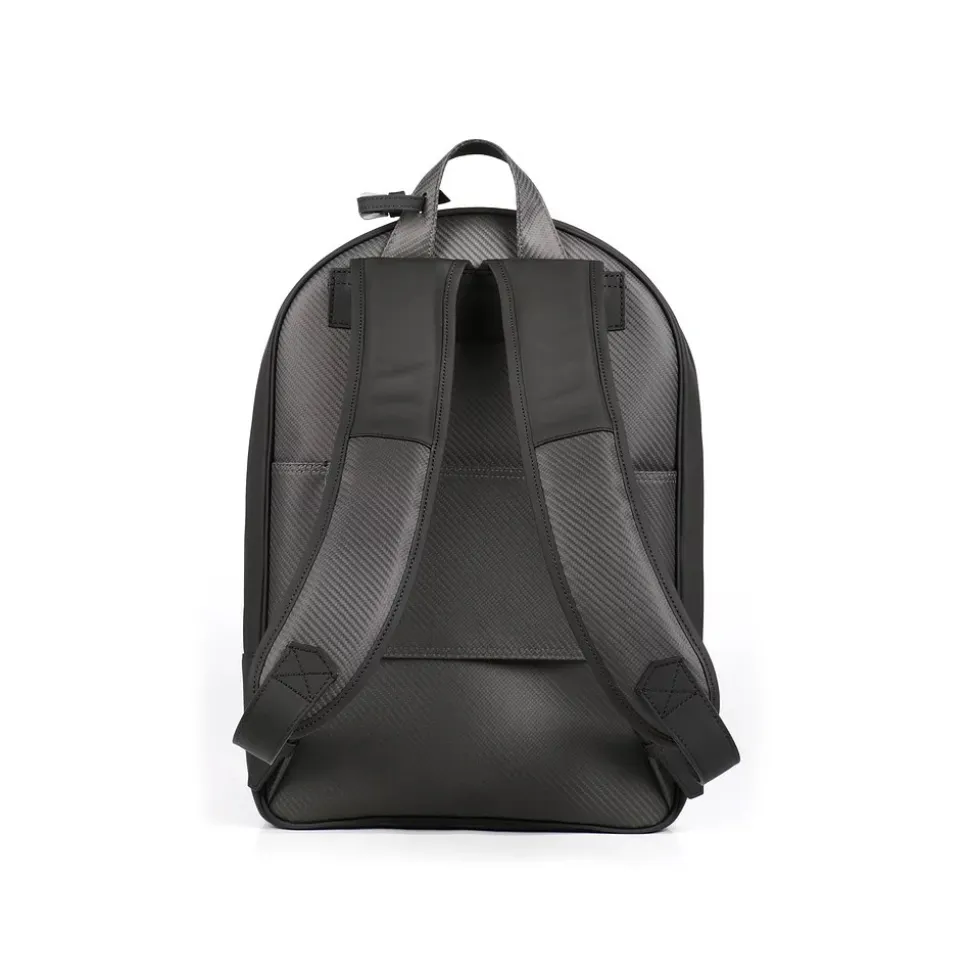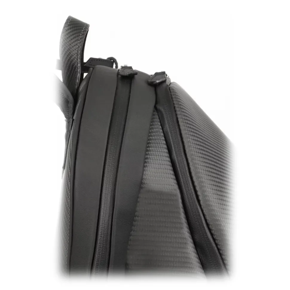 Ultra light backpack exclusively handmade in Italy with Nix real carbon fiber and supercars automotive leather trimming.