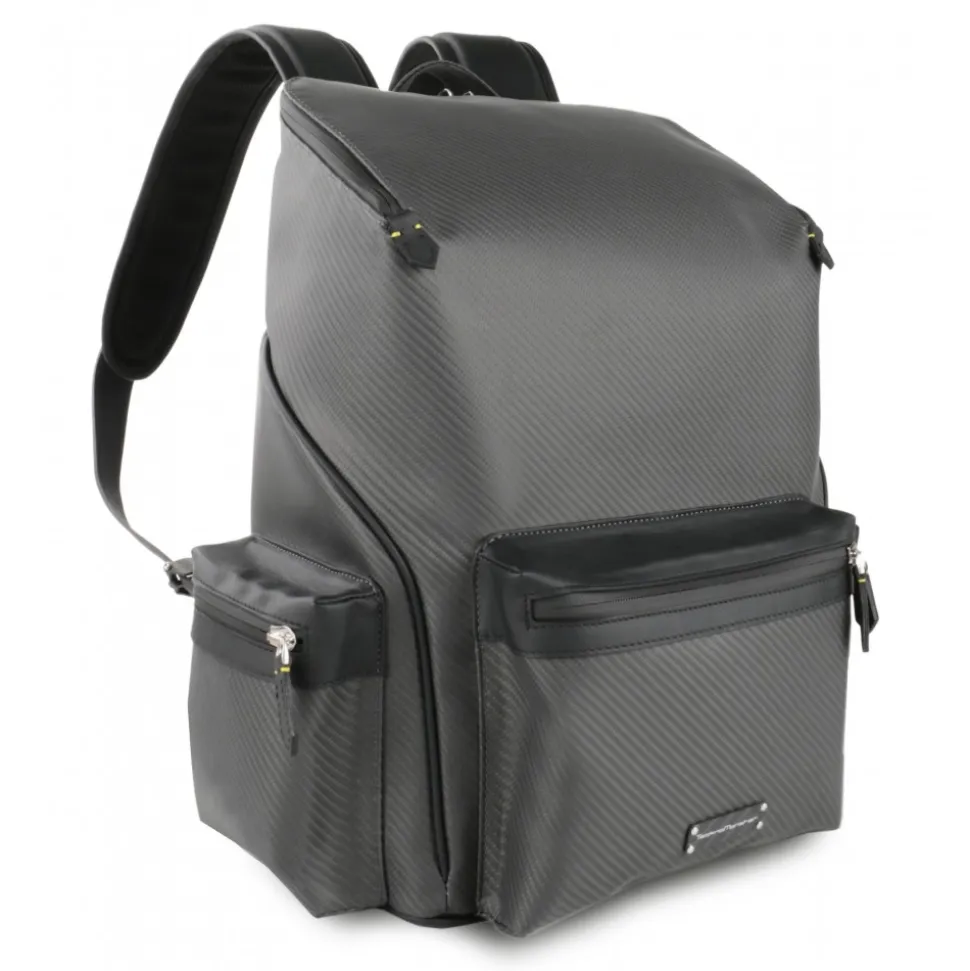 Ultralight Backpack in Carbon Fibre Nix with hand made leather details. Plate logo with Carbon Fibre Glacies. All HiTeck sockets are in Carbon Fibre Glacies.