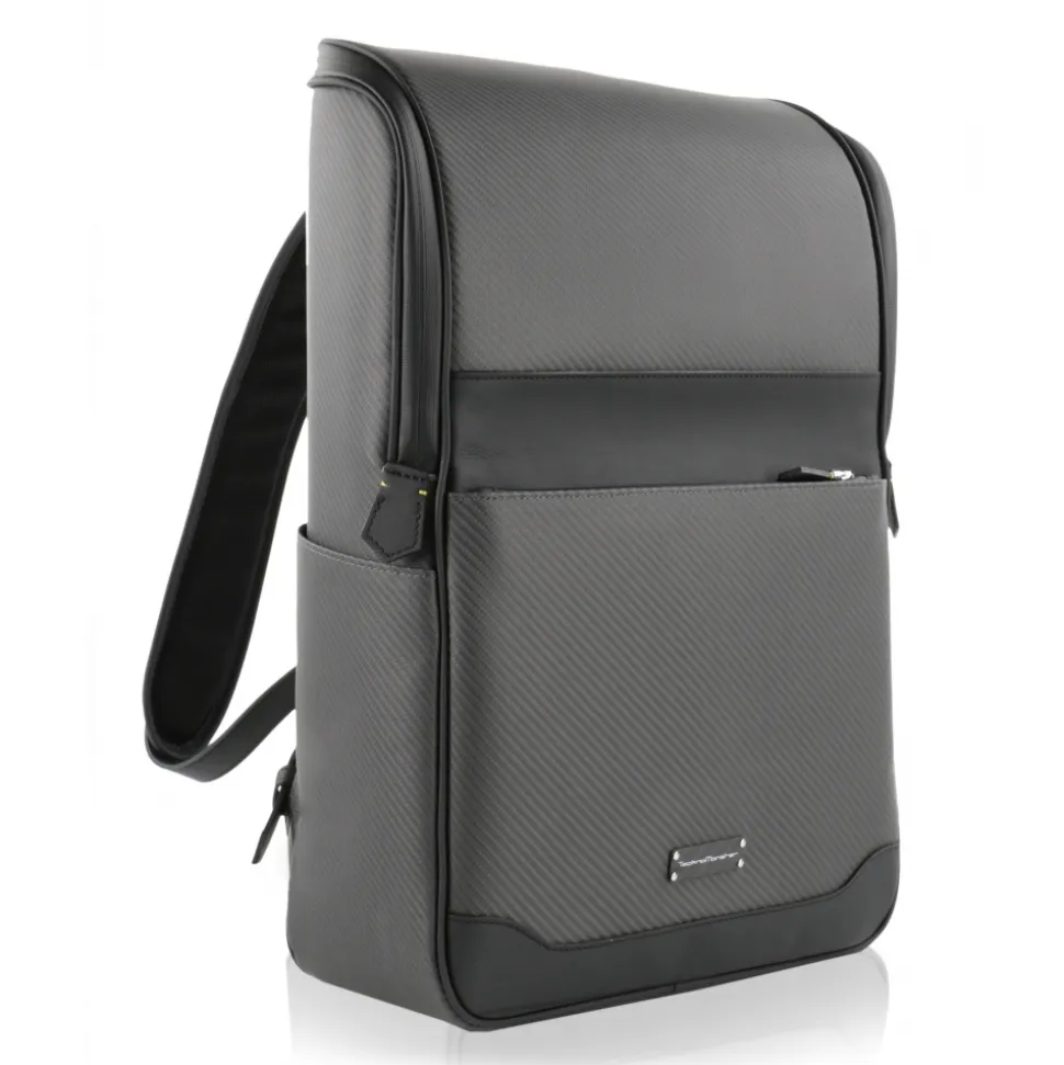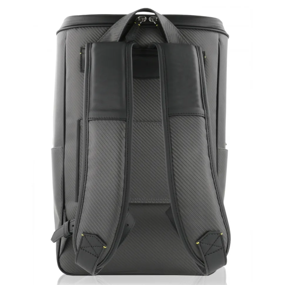 Ultralight Backpack in Carbon Fibre Nix with handle and hand made leather details. All HiTeck sockets are in Carbon Fibre Glacies.